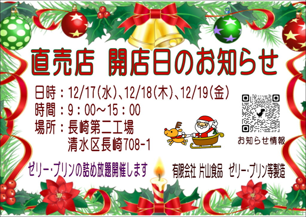 工場直営店 開店日お知らせ